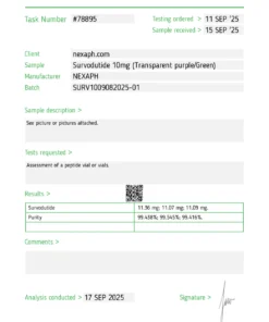 At NEXAPH, all research compounds are prepared following internal quality procedures to ensure consistency across batches. This allows researchers and institutions to work with standardized materials when conducting scientific studies involving Survodutide 10mg.